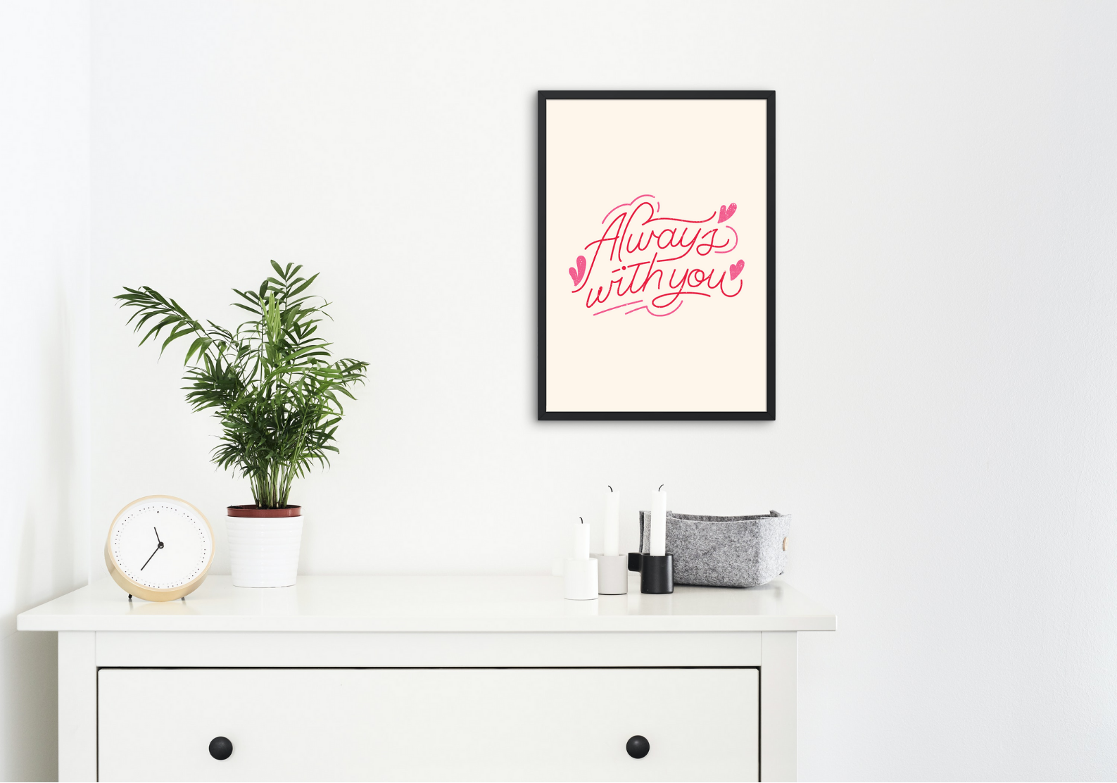 Ein Poster, um die besondere Beziehung und Verbundenheit zu einer Person auszudrücken. Zeige deinen Liebsten deine Liebe und schenke Ihnen das Poster. Lasse sie wissen, dass du dich in ihrer Nähe so sehr wohlfühlst, dass du sie nicht mehr verlassen willst.